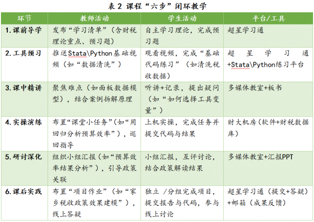 同时,搭建“线上+线下”资源库:线上整合中国大学MOOC《计量经济分析》、超星平台自建资源(含案例数据、Stata\Python代码库、政策解读视频);线下依托“江财实验室机房”,配置建模软件与财税数据库,保障实操教学。